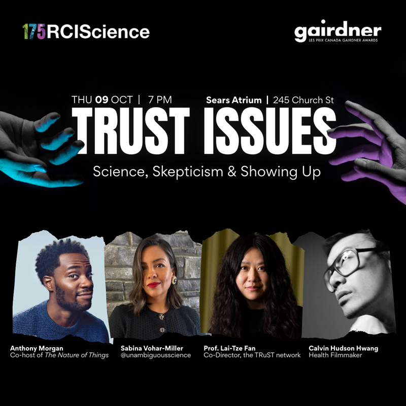 Trust in science isn’t built in a lab–it’s built through conversation, relationships, and community. At a time when public trust in science, media, and institutions feels like it’s hanging by a thread, Canadian science communicators face a growing challenge: how do we foster trust when it feels hardest to earn? Join CBC’s Anthony Morgan in conversation with filmmaker Calvin Hudson Hwang, community health advocate Sabina Vohra-Miller, and tech and society researcher Lai-Tze Fan for a lively, real-talk panel on the power–and challenges–of fostering trust in our communities. Geared toward scientists, researchers, and science communicators in the GTHA, this conversation offers a uniquely Canadian lens on rebuilding trust from the ground up–especially when it feels like the ground is shifting beneath us.